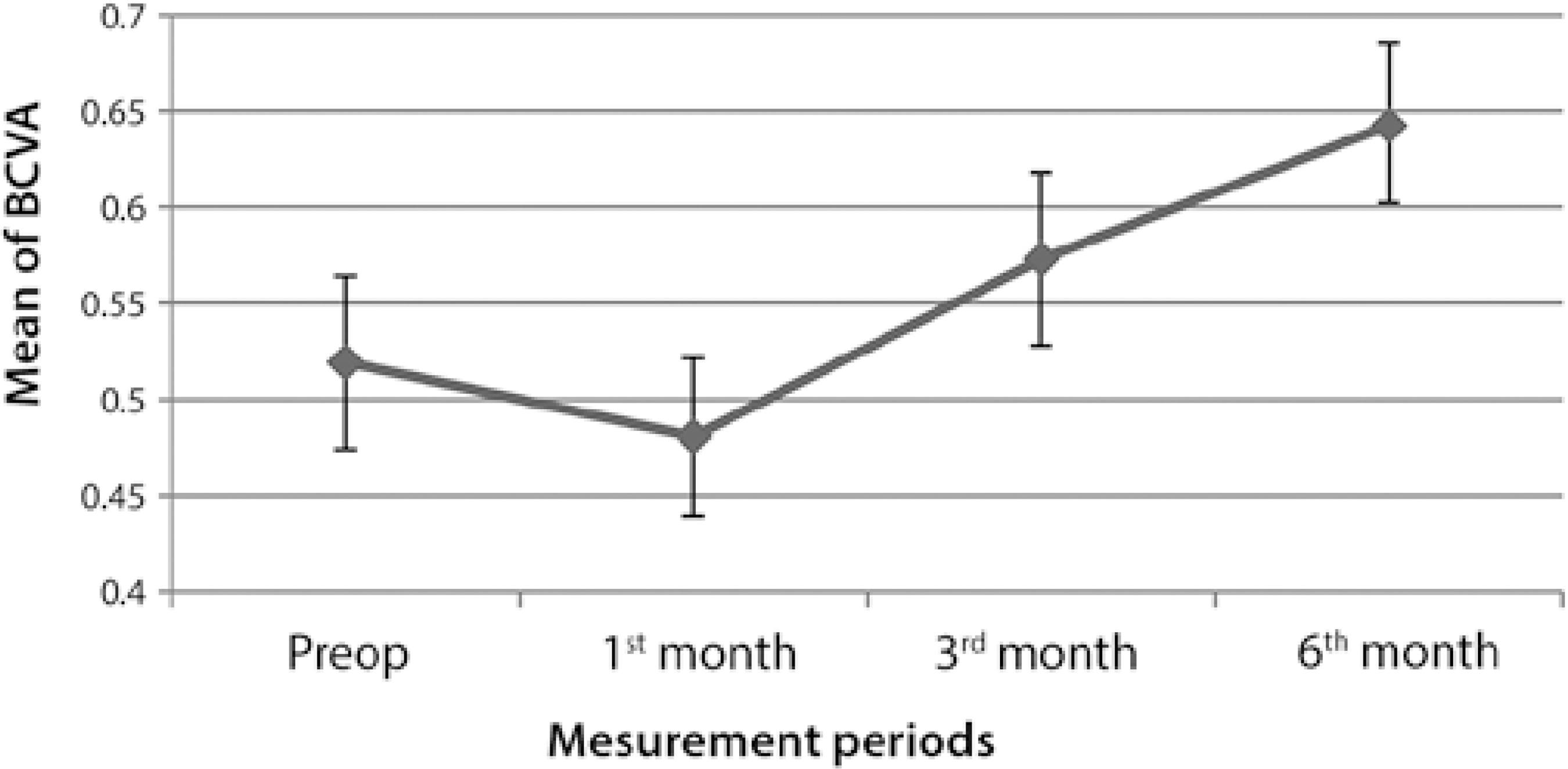 Figure 1 Graph representing changes in best corrected visual acuity over time.