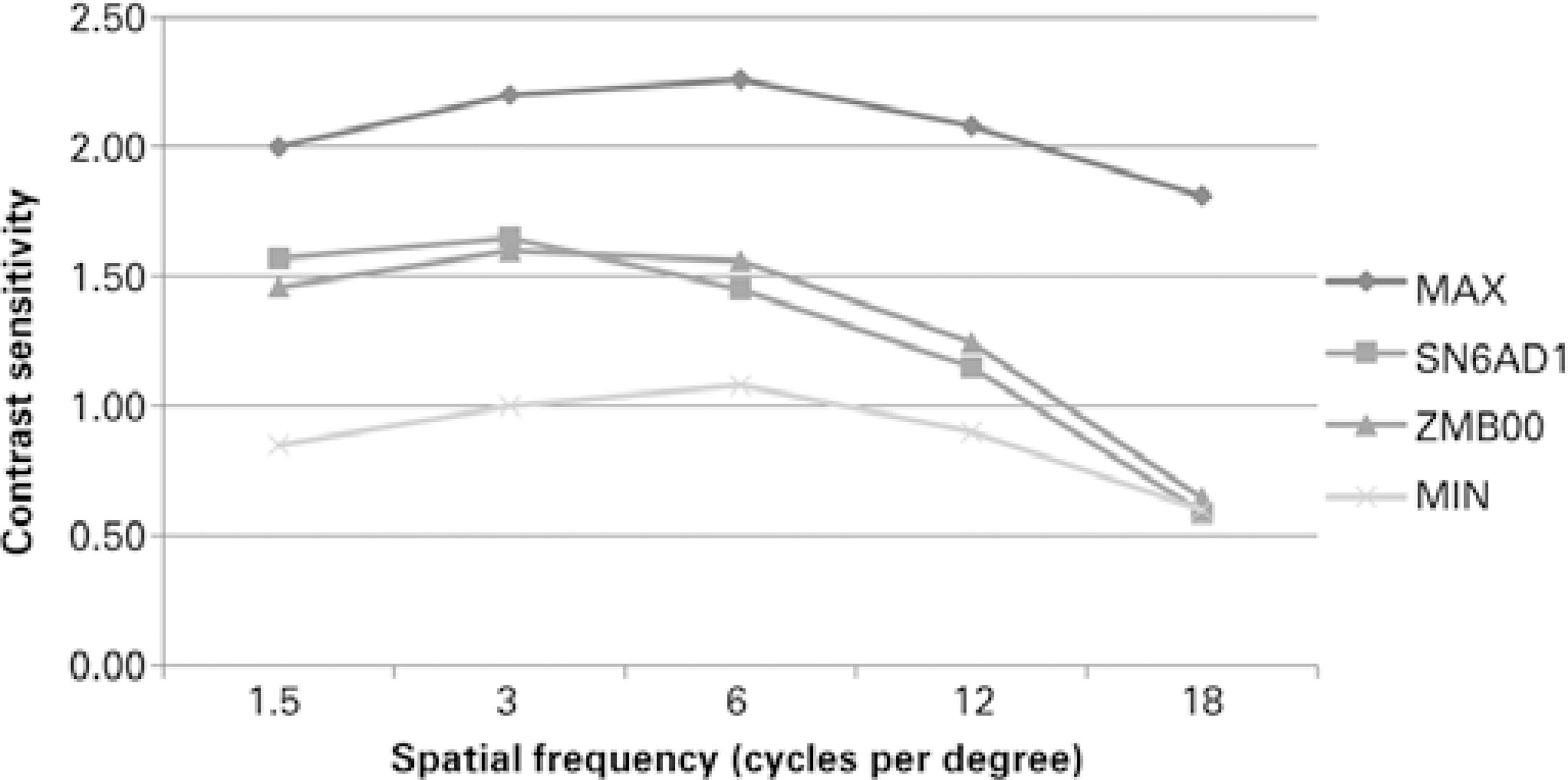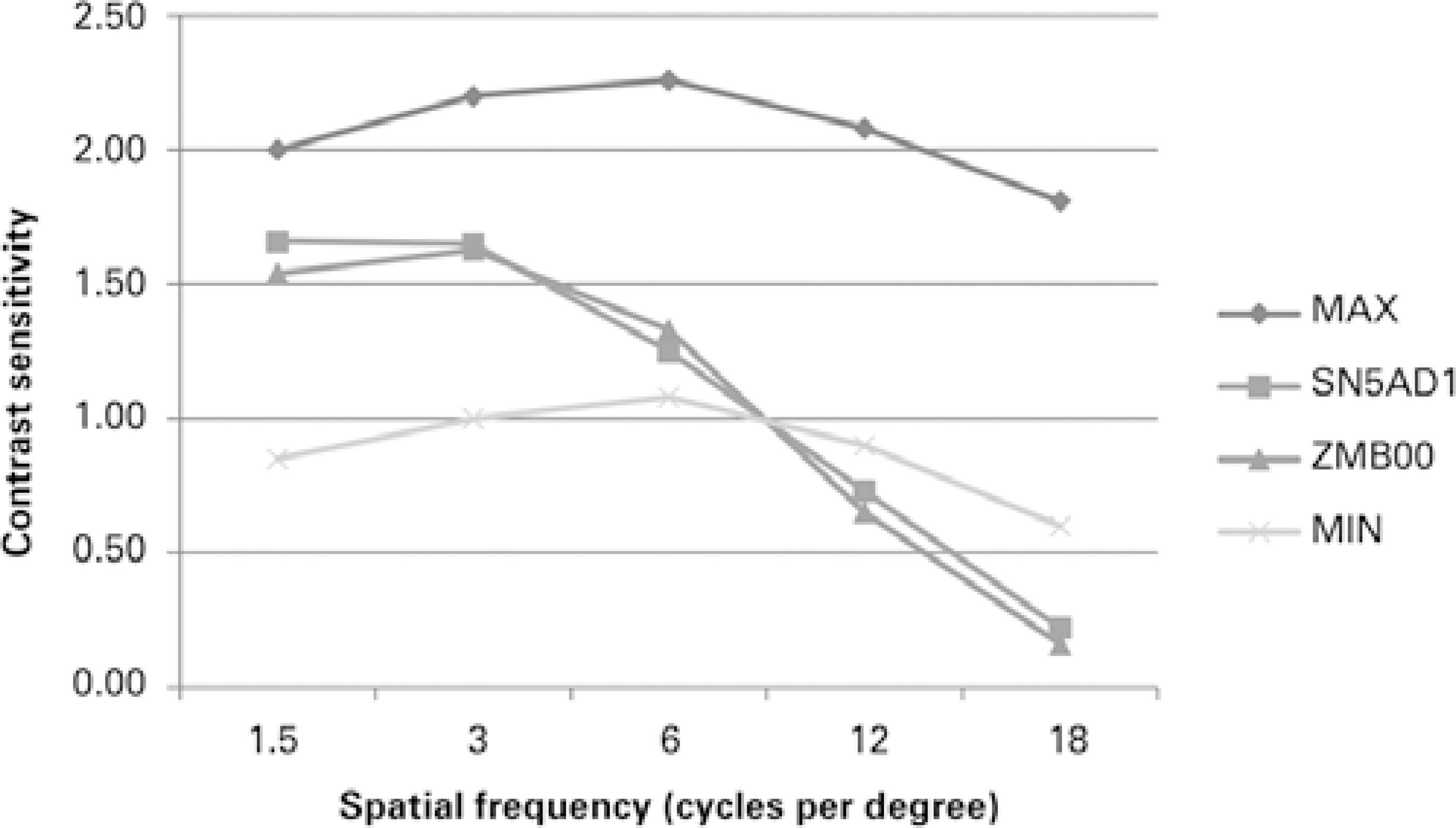 Figure 3 Comparison for the SN6AD1 and ZMB00 lenses with respect to the photopic situation without glare.
