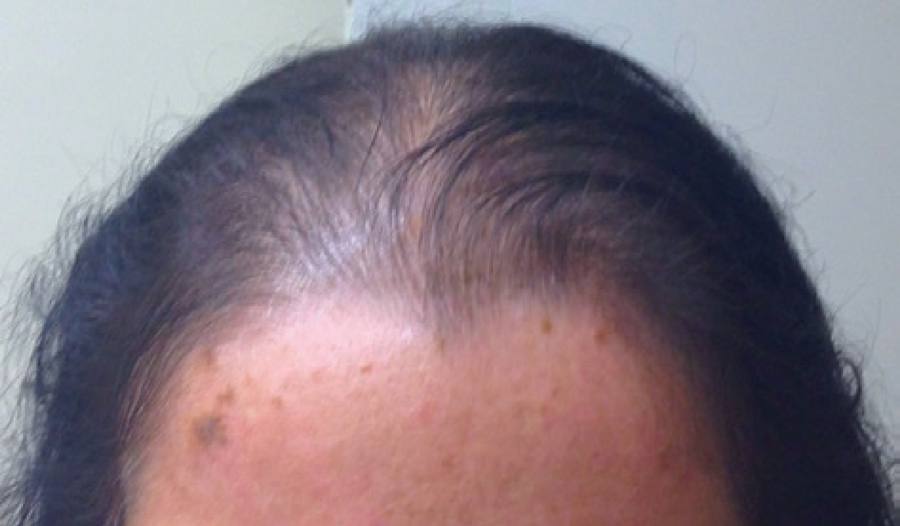 The second case involved a 28-year-old woman who was also clinically diagnosed with RTS, with early-onset poikilodermatosis and sparse scalp hair (Figure 3). Five years prior to examination by the Ophthalmology Department, the patient underwent marginal rotation and lash electrolysis on her right eye; however, the symptoms persisted. She was referred for ocular hyperemia and a burning and foreign body sensation lasting for a total of 15 years.