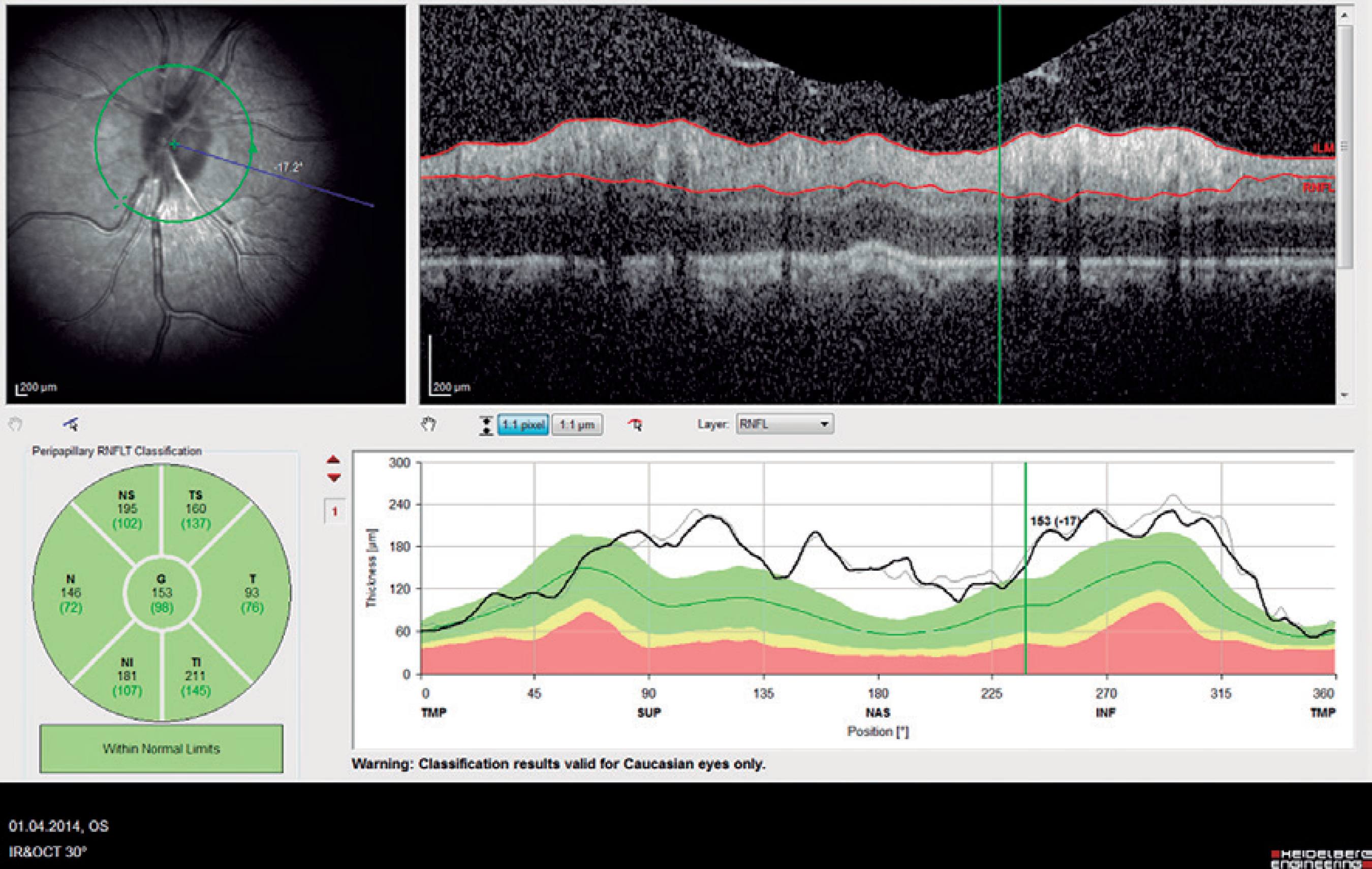 | Retinal fiber layer thicknesses | |||||