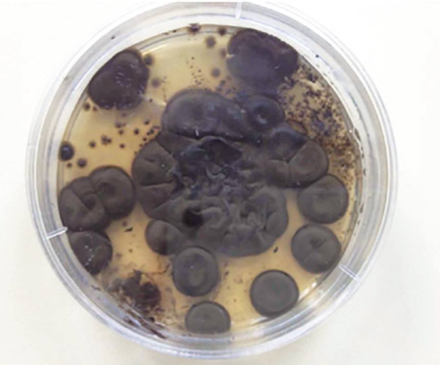 Pathological examination revealed findings of chronic granulomatous inflammation. On microbiological examination, flat, heaped, folded, green-colored colonies were initially observed on Sabouraud dextrose agar (Oxoid, Hampshire, England) before the colonies returned to a deep black olive-green color with black reverse (Figure 2). To identify the causative species, samples were sent to the Public Health Institution of Turkey Mycology Reference Laboratory (PHIT-MRL).
