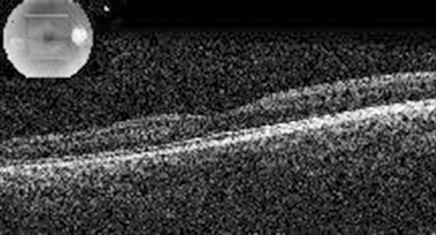 Hematological evaluation revealed iron deficiency anemia, and she was prescribed iron supplements. We followed up with her weekly during the first month and monthly thereafter up to the sixth month. One week after her initial evaluation, her visual acuity increased to 0.3 in OD. After 2 months, the hemorrhages had completely resorbed (Figure 1 C), and SD-OCT sections were found to be normal without any evidence of disturbance of the retinal layers. Only the hyper-reflectivity of the ILM at the fovea remained stable. At the six-month visit, visual acuity was still 0.3, with stable SD-OCT findings (Figure 3).