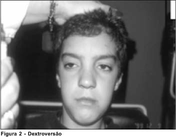 G.A.L., masculino, branco, 10 anos e 11 meses, foi encaminhado ao Serviço de Oftalmologia do Hospital de Clínicas da Universidade Federal do Paraná (UFPR) pelo Serviço de Neuromuscular da mesma instituição, por apresentar limitação da motilidade ocular em ambos os olhos e ptose palpebral bilateral. A criança nasceu no município de Barbosa Ferraz-PR, de gestação a termo, em regulares condições. Apresentava choro fraco, movimentação débil, dificuldade de sucção com engasgos freqüentes, ptose palpebral bilateral e oftalmoplegia. Persistiu com o quadro, somado a hipotonia sistêmica importante e dificuldade de deambulação. Apresentou diversas internações hospitalares antes dos dois anos de idade por amigdalites de repetição. Aos dois anos e seis meses, a família procurou atendimento médico no interior do estado de São Paulo, ocasião em que foi diagnosticada miastenia gravis e foi iniciado o tratamento com inibidor da acetilcolinesterase (piridostigmina), sem o correto ajuste da droga de acordo com o crescimento da criança. Aos quatro anos de idade, o menor foi encaminhado ao Hospital de Clínicas da UFPR, onde teve a dose da medicação reajustada, levando a melhora importante dos sintomas sistêmicos e melhora parcial da ptose palpebral, persistindo, contudo a oftalmoplegia externa.
