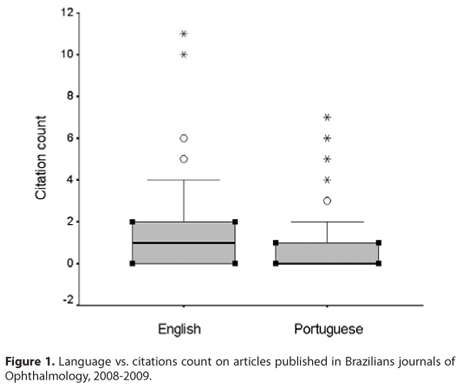 To the best of our knowledge, the impact of publication language on citation frequency in the ophthalmology journals has not yet been investigated from a Brazilian perspective. In the present study, we focused on papers published between 2008 and 2009. The main purpose of this study was to determine the associations between language and number of citations of ophthalmology articles published in Brazilians journals.