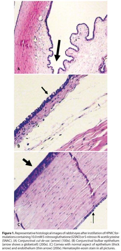 CONCLUSÃO: Soluções aquosas de HPMC contendo GSNO e SNAC em concentrações até 10,0 mM não induzem irritação ocular.