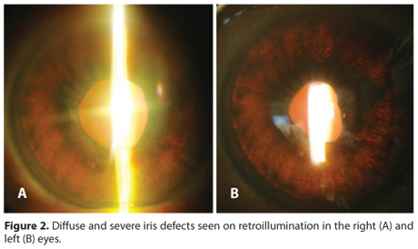 Descritores: Doenças da íris, Doença aguda; Transiluminação; Pressão intraocular; Gonioscopia; Epitélio pigmentado ocular; Relatos de casos; Humanos; Masculino; Meia-idade