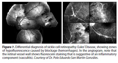 The sickle cell hemoglobinopathy with the greatest number of clinical manifestations is the SS type, which leads to hemolysis and sickling crises. Patients of the SC genotype, who present rare systemic changes, are usually those with the most severe retinal manifestations(5-8).