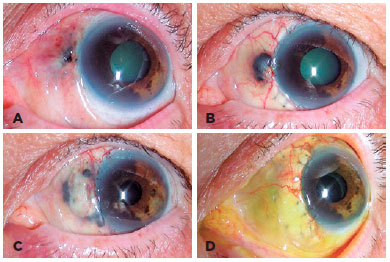 Descritores: Melanoma; Neoplasias uveais; Radioisótopos de iodo; Braquiterapia; Necrose; Esclera; Biopsia por agulha fina