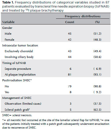 Keywords: Melanoma; Uveal neoplasms; Iodine radioisotopes; Brachytherapy; Necrosis; Sclera; Biopsy, fine needle