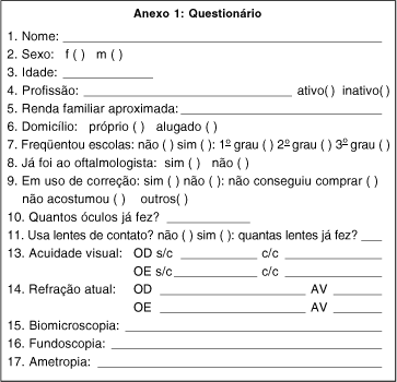 1 Neto SMC, Senne FMB, Matsui IA, França ST, Tanaf U, Cara JN. Levantamento do custo de óculos na cidade de Campinas SP. Revista Brasileira de Oftalmologia 1988;47:40-5.