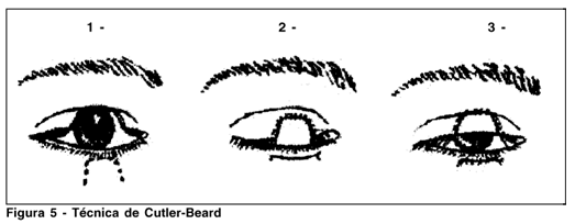 1 - O retalho deve conter os três elementos teciduais básicos da pálpebra: pele, tarso e conjuntiva, com finalidade de se conseguir o melhor resultado estético-funcional;