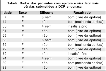 O seguimento pós-operatório foi de 3 meses. Os resultados basearam-se na avaliação dos sintomas pelos pacientes. Bom resultado foi definido como ausência ou melhora da epífora ao final dos 3 meses.