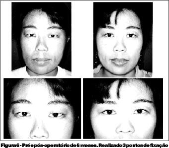 Quando comparamos os resultados obtidos com a técnica em estudo com aquelas que realizam ressecção fusiforme da pele da pálpebra superior, podemos afirmar que o tempo de afastamento pós-operatório e a morbidade intra e pós-operatória são indubitavelmente menores na primeira técnica. As pálpebras apresentam aspecto razoável após o 8º dia de pós-operatório e readquirem completamente sua mobilidade após 15 dias(12,40).