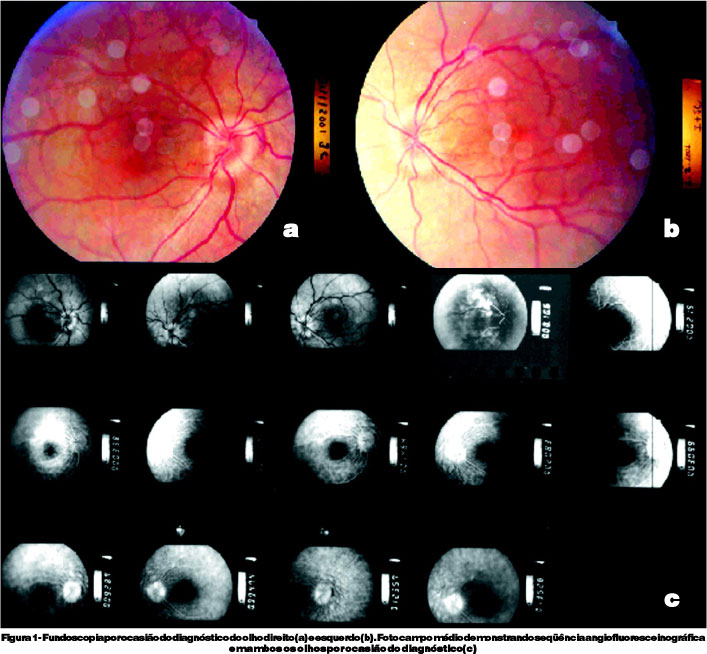 V.G.S., do sexo feminino, leucoderma, 39 anos de idade, costureira, procedente da cidade de São Paulo, apresentou quadro de cefaléia fronto-occipital bilateral, de forte intensidade, tipo compressiva, constante, com períodos de piora e melhora espontânea, havendo exacerbação da dor aos esforços, após almoço e posição supina, e alívio relativo com analgésicos, associada à foto e fonofobia, seguida, após cinco dias, de episódio agudo de baixa de acuidade visual em ambos os olhos, acompanhados de otorragia em ouvido esquerdo. Os antecedentes mórbidos pessoais e familiares foram irrelevantes.