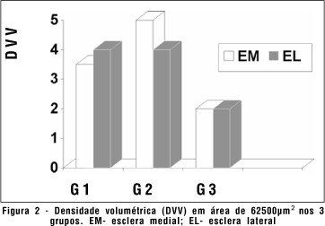 O interessante no presente estudo é que, mesmo nas regiões que não tiveram contato direto com a mmc (regiões mediais das escleras do grupo 3) (tab. I, fig. 3), houve alterações morfométricas vasculares.