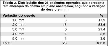 Na tabela 3, encontra-se a distribuição das variações do desvio apresentadas pelos 28 pacientes em plano anestésico.