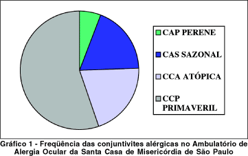 A CCP é o tipo de conjuntivite alérgica mais freqüente em nosso serviço, o que provavelmente se deve não somente ao clima tropical, mas também ao fato de ser este um hospital de referência para os casos graves desta enfermidade. A droga mais eficaz na nossa experiência é o cromoglicato dissódico, muito usado em nosso ambulatório devido ao baixo custo e aos resultados confiáveis a longo prazo.