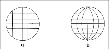 A combinação "b" é uma das mais usadas, correspondendo ao chamado sistema de Fick. Provavelmente por analogia a como são descritos ângulos sobre esferas que representam a Terra, isto é, com linhas paralelas ao equador (linhas de latitudes) e com linhas convergentes nos pólos (linhas de longitudes), respectivamente linhas "horizontais" (latitudes) traçadas em torno de um eixo "vertical" fixo (o que vai de um pólo a outro) e linhas "verticais" (longitudes) sempre feitas em torno de um eixo "horizontal" móvel (figura 4 b), a combinação acima referida ("b") é mais comumente assimilada. Não há, entretanto, uma convenção internacional firmemente estabelecida sobre o assunto. A combinação "c", por exemplo, é conhecida como sistema de Helmholtz, enquanto a "a" dá sustentação a como as rotações são exprimidas numa tela de Hess-Lancaster. Obviamente, se forem também consideradas as possibilidades de medida das torções (em torno de um eixo orbitário, fixo; ou em torno de um ocular, o que, todavia, seria mais lógico) o problema se torna ainda mais complexo(9).