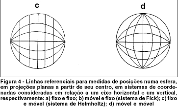 c) Medidas das rotações verticais em torno de um eixo (transversal) fixo e das horizontais em torno de um vertical do olho (móvel com ele);