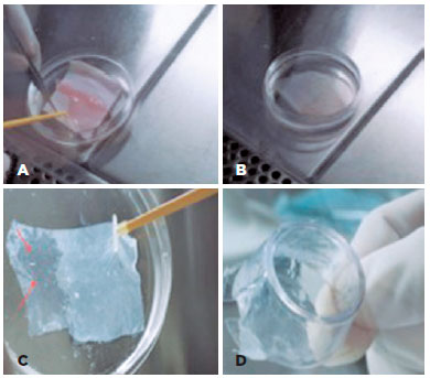The biological properties of AM (extracellular matrix integrity, growth factor composition, and high rate of cell attachment and proliferation) may be jeopardized depending on the de-epithelialization method(3). Therefore, we used a very mild method of AM de-epithelialization in the present study to avoid complications(1).