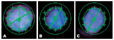 Figure 3 shows an examination of the inner aperture of different bottles from brand A using a computerized vision inspection system. Figure 3A shows an opening that is considered adequate (because it has no internal obstructions). Figure 3B demonstrates internal burrs, and Figure 3C exhibits the undefined shape of the opening. These results demonstrate the non-uniformity of the tips made by the same eyedropper brand.