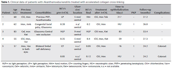 Conclusão: Este estudo sugeriu um efeito benéfico da reticulação acelerada de colágeno em casos de ceratite por Acanthamoeba infecciosa com deformação corneal. A reticulação de colágeno parece ser uma alternativa coadjuvante possível para casos de ceratite por Acanthamoeba.