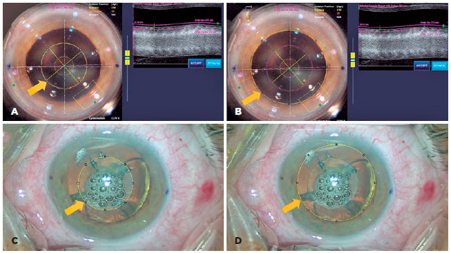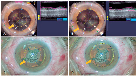 The effectiveness of our approach is also seen when comparing the percentage of eyes with a pupillary diameter <5 mm, between 5 and 6 mm, and >6 mm immediately before starting phacoemulsification in FLACS. In a previous paper, the pupillary diameter was <5 mm in 7.6% of the eyes after laser pre-treatment and before starting cataract extraction and >6 mm in only 58.2% of the eyes(7). On the other hand, in the present study, none of the eyes presented with a pupillary diameter <5 mm immediately before phacoemulsification and 85.3% of the eyes had a pupillary diameter >6 mm. Therefore, while the surgeon proceeded with surgery with a clinically significant small pupil for cataract extraction in 7.6% of the eyes in the previous study(7), increasing the risk of having further complications, this did not happen in any of the eyes included in our paper.