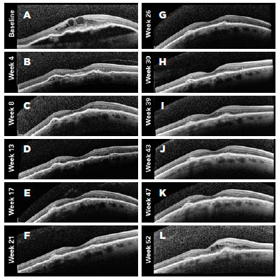 Researchers generated a pharmacokinetic mathematical model to determine if a more frequent dosing of anti-VEGF drugs (ranibizumab, bevacizumab, and aflibercept) could be beneficial(15). They demonstrated a substantial increase in binding affinity with fortnightly injections, but without a significant increase in peak concentration(15). The same researchers also showed two instances of improved treatment outcomes after fortnightly use of anti-VEGF drugs in patients refractory to monthly treatments. No clinical trials have evaluated fortnightly administrations of anti-VEGF drugs. However, according to the above-mentioned results, more frequent dosing for a short period of time may be a good option for patients showing improvement after 2 weeks of treatment, but fluid recurrence after 4 weeks.