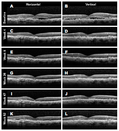 The primary study outcomes were the ETDRS BCVA and CMT as measured by SDOCT (Spectralis, Heidelberg Engineering, Heidelberg, Germany). We also analyzed CFPs (Topcon Retinal Camera TRC-50X, Topcon Corporation, Tokyo, Japan) and FA (HRA2, Heidelberg Engineering) characteristics.