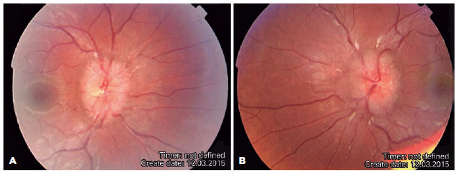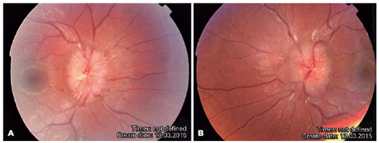 A 25-year-old obese (body mass index: 31.3) woman presented with headache, pulsatile tinnitus, double vision, and transient visual obscurations, all of which had worsened over the last three weeks. The patient’s medical history revealed no head trauma, surgery, or drug use, except for topical vitamin A in connection with acne treatment. In an ophthalmological examination, best corrected visual acuities, pupillary reactions to light and near, as well as the color vision and intraocular pressures, were all normal in each eye. On fundoscopic examination there was a stage 3 moderate papilledema (Figure 1).