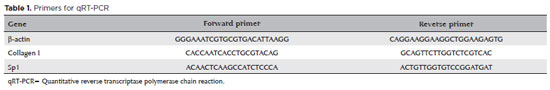 Statistical analysis was performed using IBM SPSS Statistics for Windows software (version 22.0; IBM Corporation, Armonk, NY, USA). The results are expressed as the mean ± standard deviation (SD). Differences were identified using the paired t-test and analysis of variance (ANOVA). The relationship in each group between the RNA expression levels of Sp1 and collagen I was evaluated using the Pearson's correlation coefficient and hypothesis testing of correlation coefficients. A probability (p) value <0.05 was considered statistically significant.