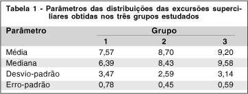 A tabela 1 relaciona os parâmetros das distribuições obtidas nos três grupos estudados.