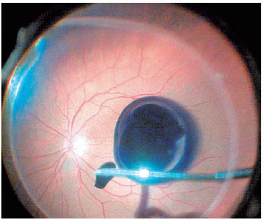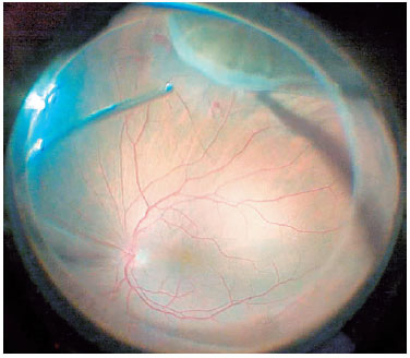 During the PPV, posterior hyaloid detachment was performed in all patients in whom the detachment did not occur naturally. This procedure is important mainly for MH Stages 2 and 3 of the Gass classification, in which the vitreous is still attached to the operculum and disk (Stage 2) or only to the disc (Stage 3). Afterward, the surgeon performed an indentation maneuver to remove the vitreous base. Removal of as much vitreous as possible is important because it enables the injection of a larger gas volume into the eye, which increases the tamponade effect and prevents gas bubbles from exerting traction in the residual areas of the vitreous, which can increase the probability of retinal tears and detachment2.