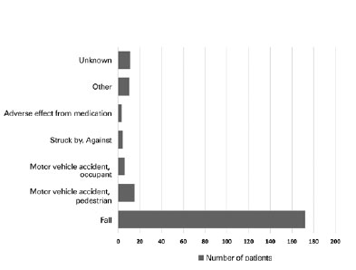 The limitations of this study include the inherent restraints of a retrospective design reliant on database records to document injuries. The extracted data were only as accurate as the assessment and documentation of the submitting physicians. Possible ICD-9-CM misclassifications might also have negatively impacted the veracity of our findings. We noted that the cataloging of risk factors differed from patient to patient. An important example was the lack of uniform documentation of visual acuities at baseline and presentation, a vital risk factor for falls in the elderly. Visual functions, including Snellen visual acuity, visual fields, contrast sensitivity, and stereopsis, are important for visualizing and avoiding environmental hazards and for providing cues that help stabilize balance, thus influencing the incidence of falls(26-28). A prospective population-based observational study design using a standardized assessment protocol developed by a multidisciplinary team that catalogs all contributing risk factors, clinical evaluations, and submission of data would help to address the study limitations and provide stronger evidence allowing for comparisons with other studies.