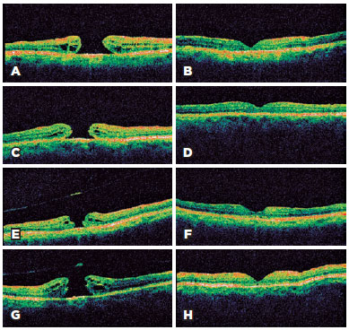 More recently, the advent of optical coherence tomography (OCT) has facilitated the assessment of MH formation. Sequential OCT scanning suggested that vitreofoveal anteroposterior traction may constitute an underlying mechanism in MH development, thus corroborating the theories of hole pathogenesis. This mechanism provides good justification for the use of vitrectomy in the treatment of MHs(1-3).