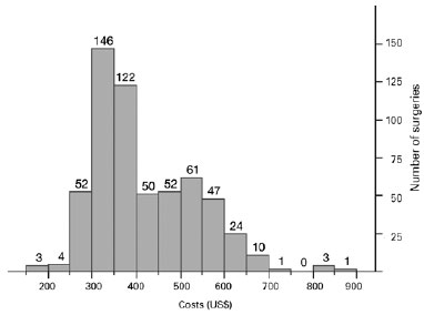 Reports from different countries have shown that cataract surgery expenses can vary enormously, particularly if costs are computed from surgeries performed by experienced physicians. As an example, a prospective randomized study conducted in Nepal reported PHACO (US$ 70) being almost four-fold higher than ECCE (US$ 15)(18). However, for this trial, surgeons performed ECCEs with small incisions, with shorter surgical times, and thus with massively lower intraoperative costs.