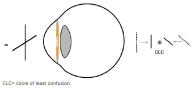 In prescriptions for spherical refractive errors, it is critical to know the dioptric position of the focus relative to the retina. The same reasoning should hold for astigmopia. In practice, there is a consensus that the element that emulates a focus for spherocylindrical combinations is the CLC, with its dioptric position relative to the retina expressed by the SEa.