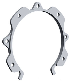 Here, we report successful application of the Canabrava Ring to facilitate pupillary dilation in a patient with an iris coloboma. The Canabrava Ring is a polymethyl methacrylate (PMMA) device with a semi-arch opening of 60°, an internal diameter of 6.3 mm and a vertical length of 0.4 mm. There are seven indentations (0.9 mm horizontal length) which are positioned on the ring in an alternating fashion, including four facing upwards and three facing downwards (Figure 1). These alternating attachments are horizontally aligned and are specifically spaced to facilitate appropriate pupillary dilation when inserted in the iris. Each indentation has a 0.28 mm-wide orifice that facilitates manipulations with a Sinskey Hook. The Canabrava Ring is thin and compact which ensures easy insertion into the ocular globe via an incision as small as 1.4 mm(10).