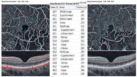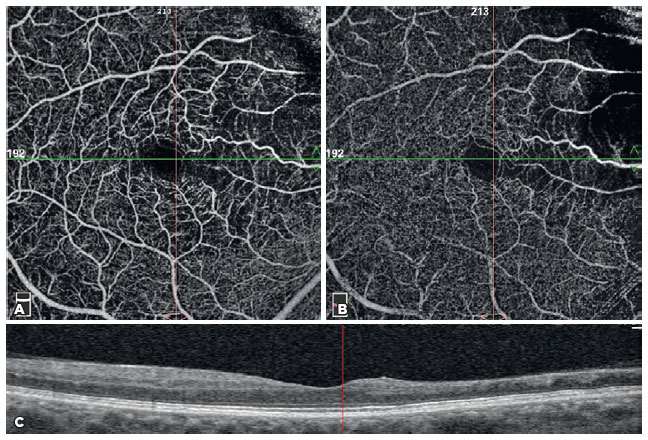 Descritores: Oclusão da veia retiniana/diagnóstico; Edema macular/ fisiopatologia; Retina/patologia; Capilares/patologia; Fóvea central; Vasos retinianos/patologia; Angiofluoresceinografia; Tomografia de coerência óptica