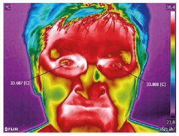Thermography is an imaging technique which detects radiation in the long-infrared range of the electromagnetic spectrum emitted by various objects, including human tissues. Radiation is emitted at temperatures above absolute zero, i.e., -273.15ºC or 0 K(1). A thermographic camera shows the exact value and distribution of the temperature of the examined surface, which depends on the vascularization and metabolism of the tissue. This technique captures thermal images, which are actually visual displays of the amount of infrared energy transmitted, emitted, or reflected by the tissue.