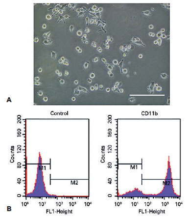 Primary retinal microglia showed either rounded, bipolar, or multipolar shapes (Figure 1A). The purity of retinal microglia was 80.18 ± 4.38%, determined through flow cytometry using a CD11b antibody (Figure 1B).