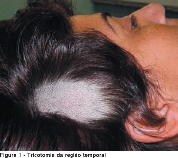 O fechamento da ferida cirúrgica é realizado com a aproximação do subcutâneo utilizando vicryl 3.0 e do couro cabeludo com mononylon 4.0(18).