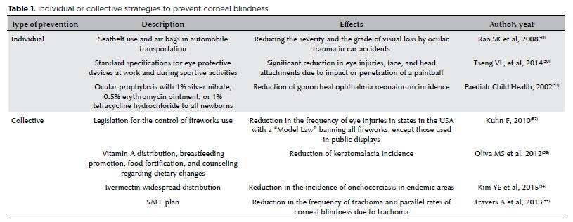 After a rapid overview of the medical literature and lectures presented in clinical conferences about corneal diseases, opacity, and corneal blindness, one may arrive at four conclusions: a) corneal blindness is a rare and distant problem; b) the causes are predictable, and the events leading up to corneal blindness are preventable; c) most of the causes of corneal injury are treatable, and the blindness outcome is avoidable; d) therapeutic approaches are very effective and long lasting(1-3).