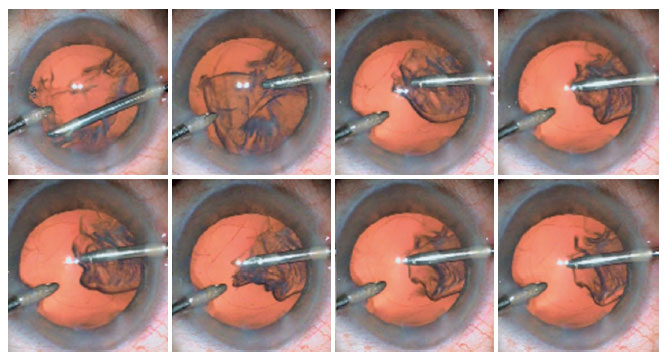 IOP was 15 mmHg (no medication) and visual acuity increased to 20/30, 4 weeks after the surgery. Moreover, ACD increased to 4.71 mm and ACA widened to 30.2°. We performed right eye cataract surgery of the patient 2 months later using the same preoperative preparations, anesthesia, and surgical technique. Here too, we encountered unusual undulation and flaccidity of the lens capsule (Video 1).