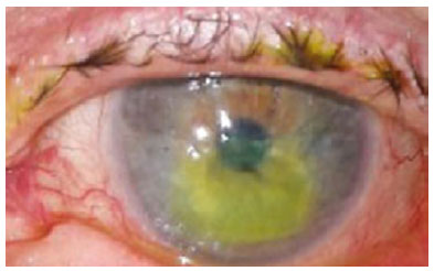 Corneal melting is an unusual complication of phacoemulsification. Several predisposing risk factors have been associated with this complication, such as dry eye disease, rheumatoid arthritis, topical nonsteroidal anti-inflammatory drugs (NSAIDs), and corneal infections(2-5).