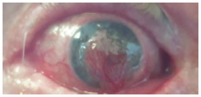 Concerning the treatment of our patient, Gundersen’s conjunctival flap was the golden section of ensuring globe’s integrity and reluctance to undergo keratoplasty with guarded prognosis(16). The absence of limbal and conjunctival vasculitis excluded conjunctival resection from our options, because it has been confirmed to have no therapeutic effect(8). Finally, the perforation size made the use of cyanoacrylate glue impossible.