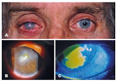 The outcome is dependent on the severity and persistency of the aggression and a combination of external and systemic factors(33,34,45). In the first phase, poor outcomes include progressive stromal erosion, perforation, and corneal melting. In the second and third phases, the process may result in intense and deep opacity, neovascularization, and altered neural network replacement (Figure 2). In these cases, loss of the optic function of the cornea and persistent pain and inflammation are observed in the clinical setting(33,46).