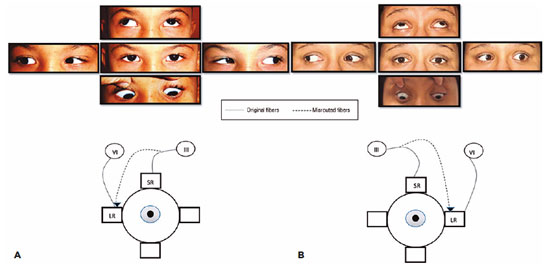 Conclusões: Sincinesias oculares congênitas podem se apresentar de modo bastante eclético e incomum. A inervação aberrante presente em cada um desses casos os coloca na lista de candidatos a integrar o grupo das desordens congênitas da desenervação craniana.