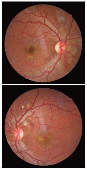 Lupus choroidopathy is considered as a systemic disease-activity marker, and, in the present case, it was the primary manifestation. The presence of choroidopathy indicates aggressive and prolonged immunosuppression, which requires monitoring by an ophthalmologist and rheumatologist(2).