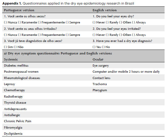 26. Castro JS, Selegatto IB, Castro RS, Vasconcelos JP, Arieta CE, Alves M. Translation and validation of the Portuguese version of a dry eye disease symptom questionnaire. Arq Bras Oftalmol. 2017; 80(1):14-6.